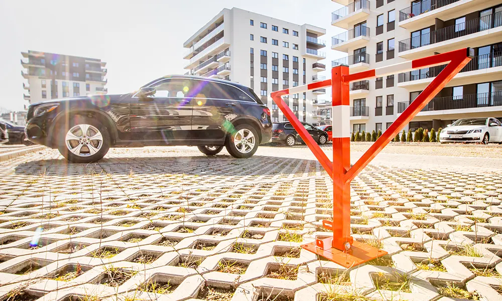 Bloqueador de estacionamiento R3: es la protección de estacionamiento plegable, fabricada en acero. Los elementos laterales son doblados en forma de arco. La altura de 60 cm garantiza un equilibrio óptimo, adaptándose a todo tipo de coches.