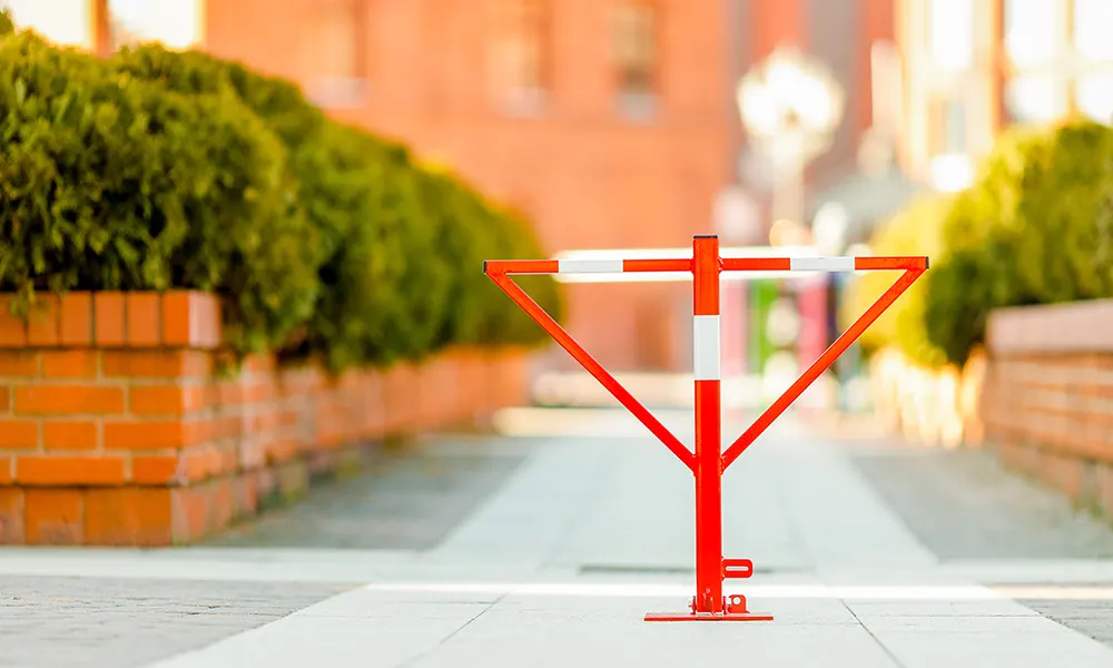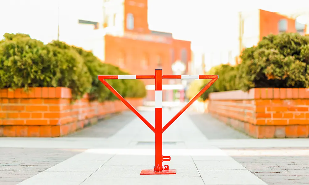 Nuestro bloqueador en posición vertical impide que se estacionen los vehículos. Gracias a su color rojo intenso con elementos reflectantes, el bloqueador es fácil de ver incluso en la oscuridad.