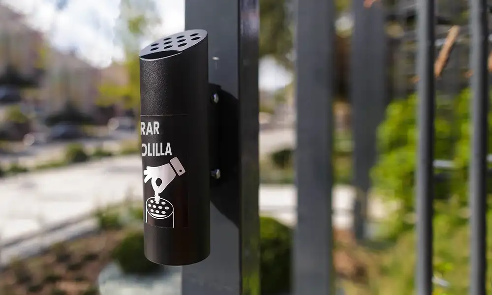 Cenicero Urbano de pared: excelente solución para lugares donde no hay sitio para instalar un cenicero tradicional. Fabricado en acero cincado y pintado en polvo.