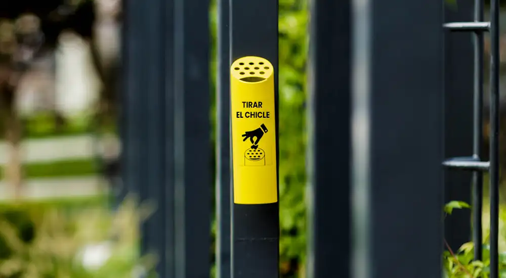 Este tipo de contenedor podemos instalar en lugares públicos, como calles, parques y centros comerciales, para mantener los espacios limpios y libres de desechos. Fabricado de acero, tiene un diseño que permite depositar los chicles usados de forma fácil y sin esfuerzo.