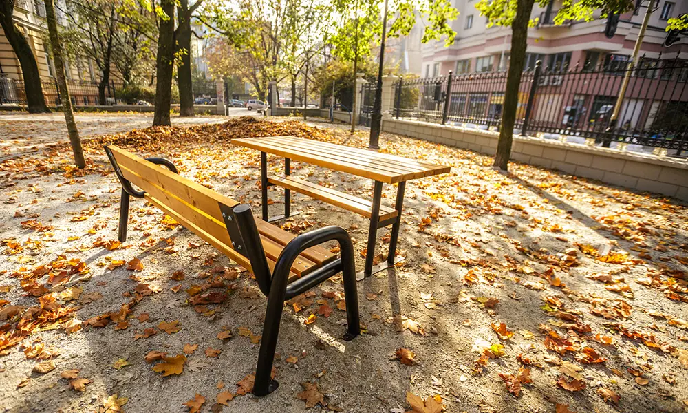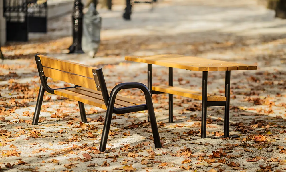 Mesa urbana de exterior «Spartan»: combinada con nuestro Banco Spartan se convierte en un elemento esencial para jardines privados, patios interiores, chalets y plazas municipales.
