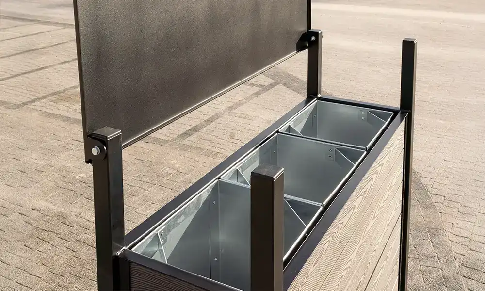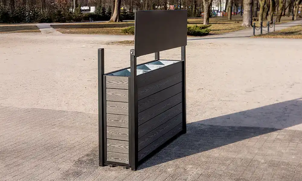 La papelera de reciclaje Narciso WPC es una solución moderna diseñada pensando en la durabilidad, la estética y la comodidad de uso.