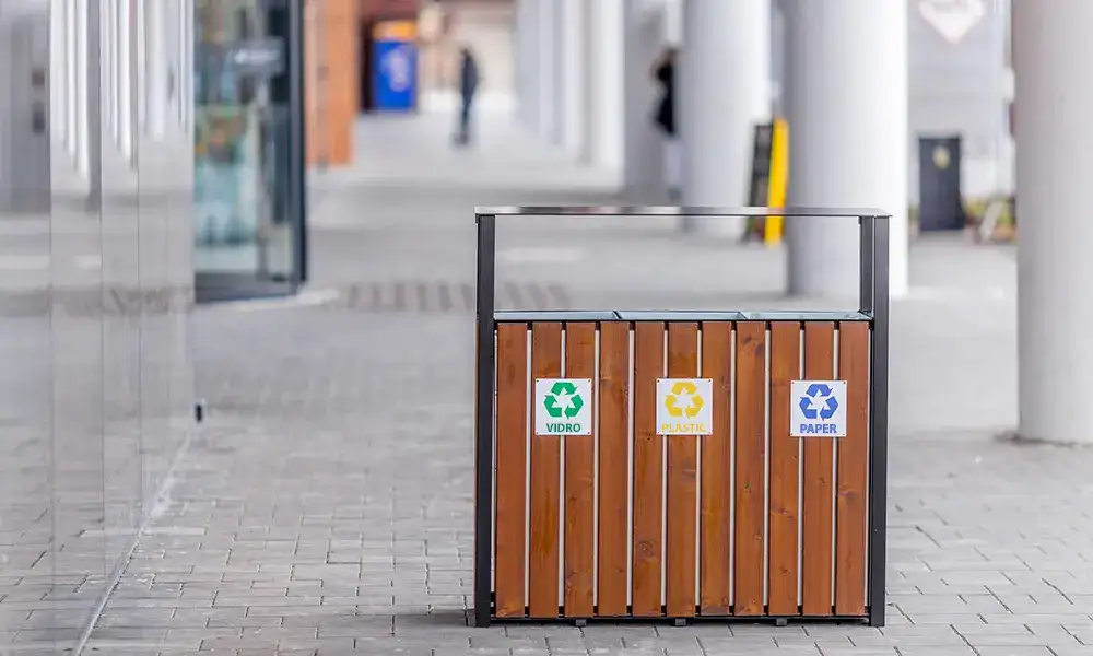 Gracias a su diseño moderno y elegante encaja bien en espacios públicos y ayuda al reciclaje y cuidado del medio ambiente.
