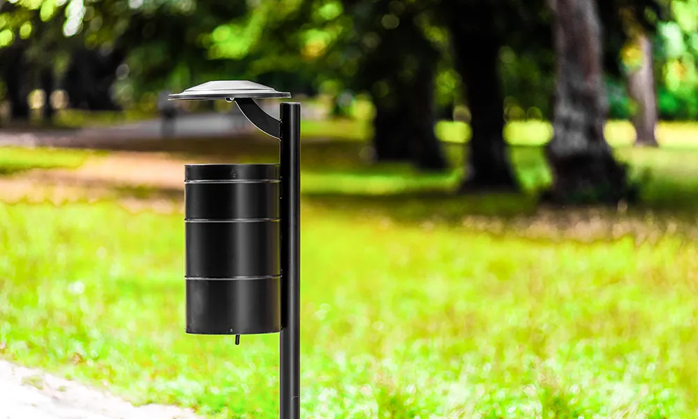 Papelera de exterior Municipal II con cubierta: es la evolución de nuestra Papelera Municipal.
